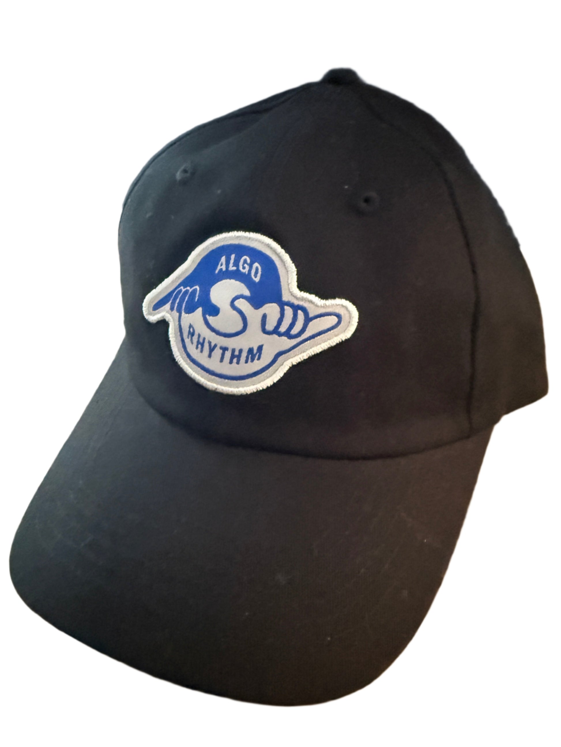 Five Panel Dad Hat. Black hat with patch and stitching.